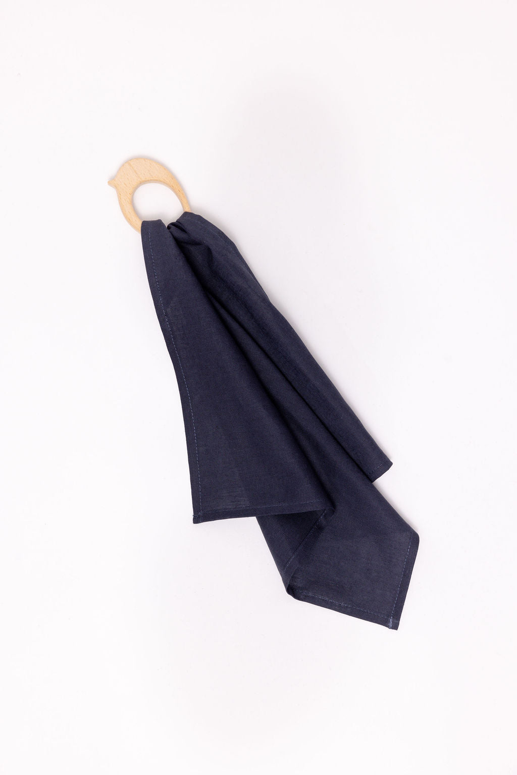 We love the simplicity of our Teether design: an elegantly carved maplewood bird. smooth and safe for your babe to chew on. and a length of soft linen to hold for comfort that snaps on and off for easy washing.